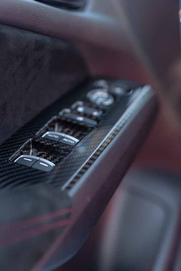 • Crafted from premium dry carbon fiber, these window switch panel covers offer a lightweight yet durable solution, ensuring longevity and a high-end appearance.